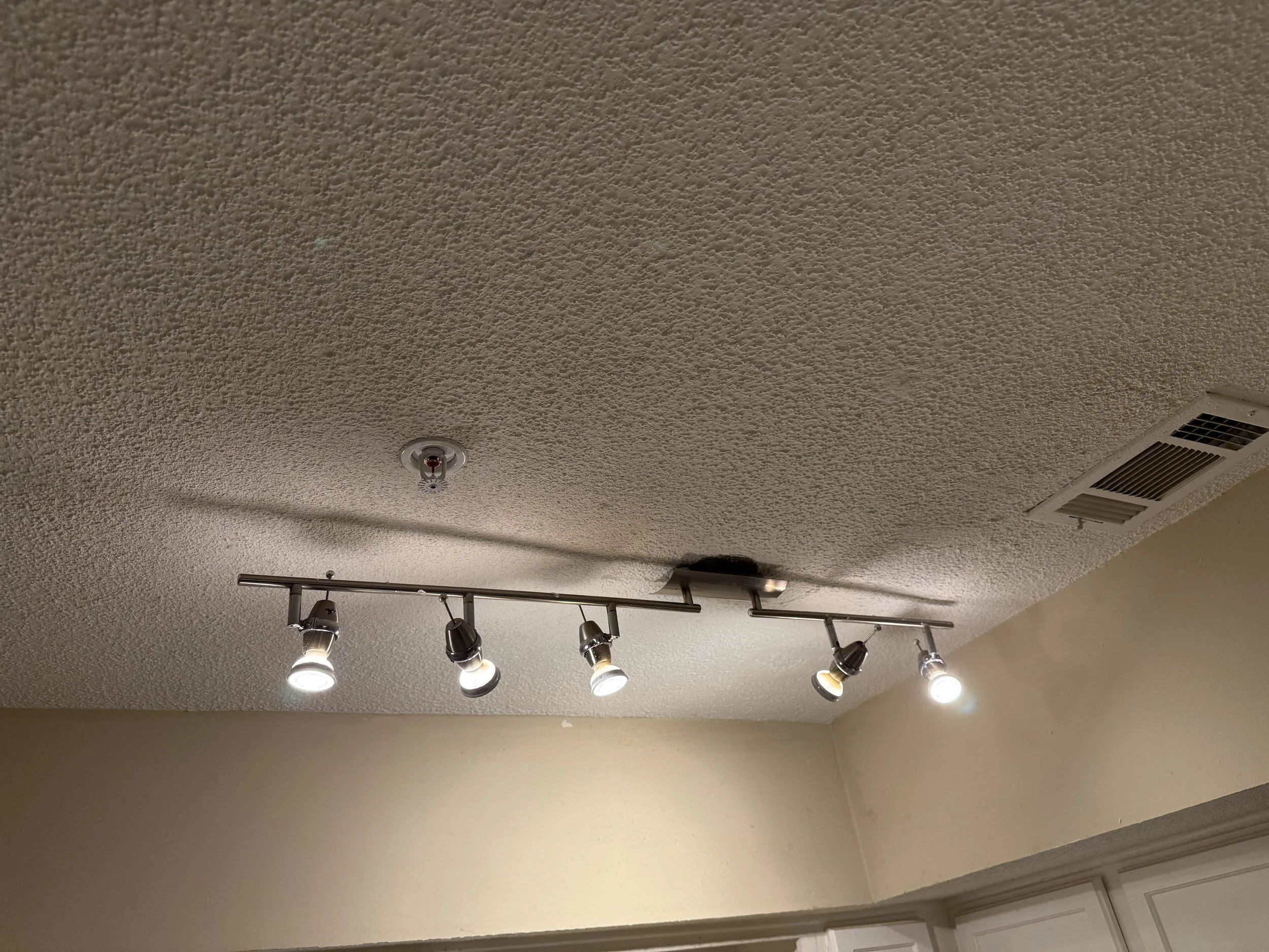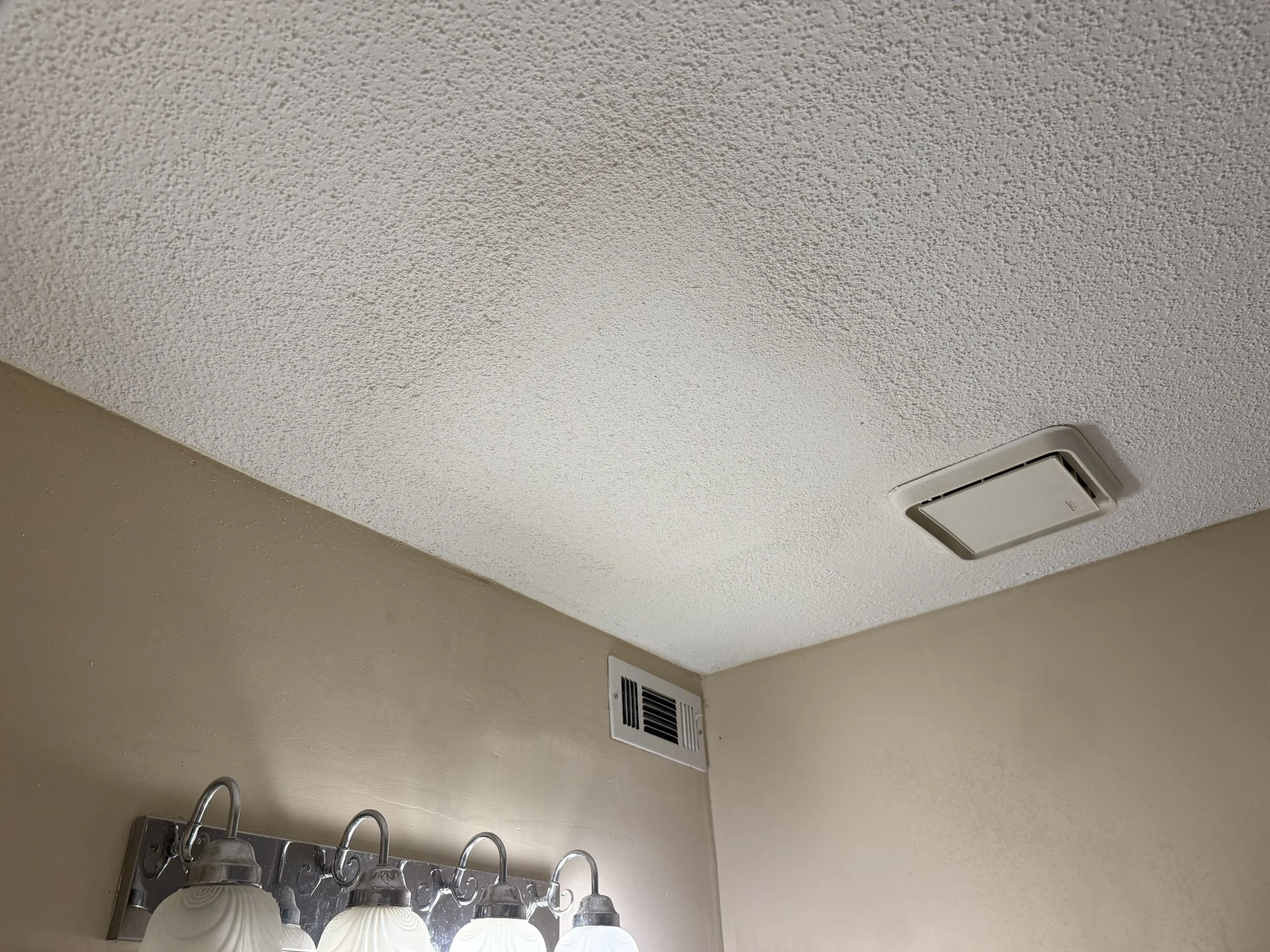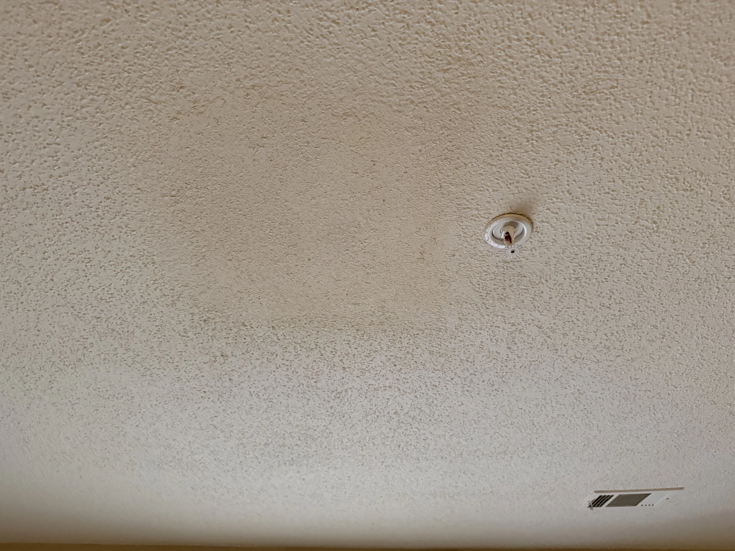 After painting and applying some ceiling texture with popcorn spray, and cleaning then reapplying the vent cover, it looks like nothing was ever there. Right? RIGHT?